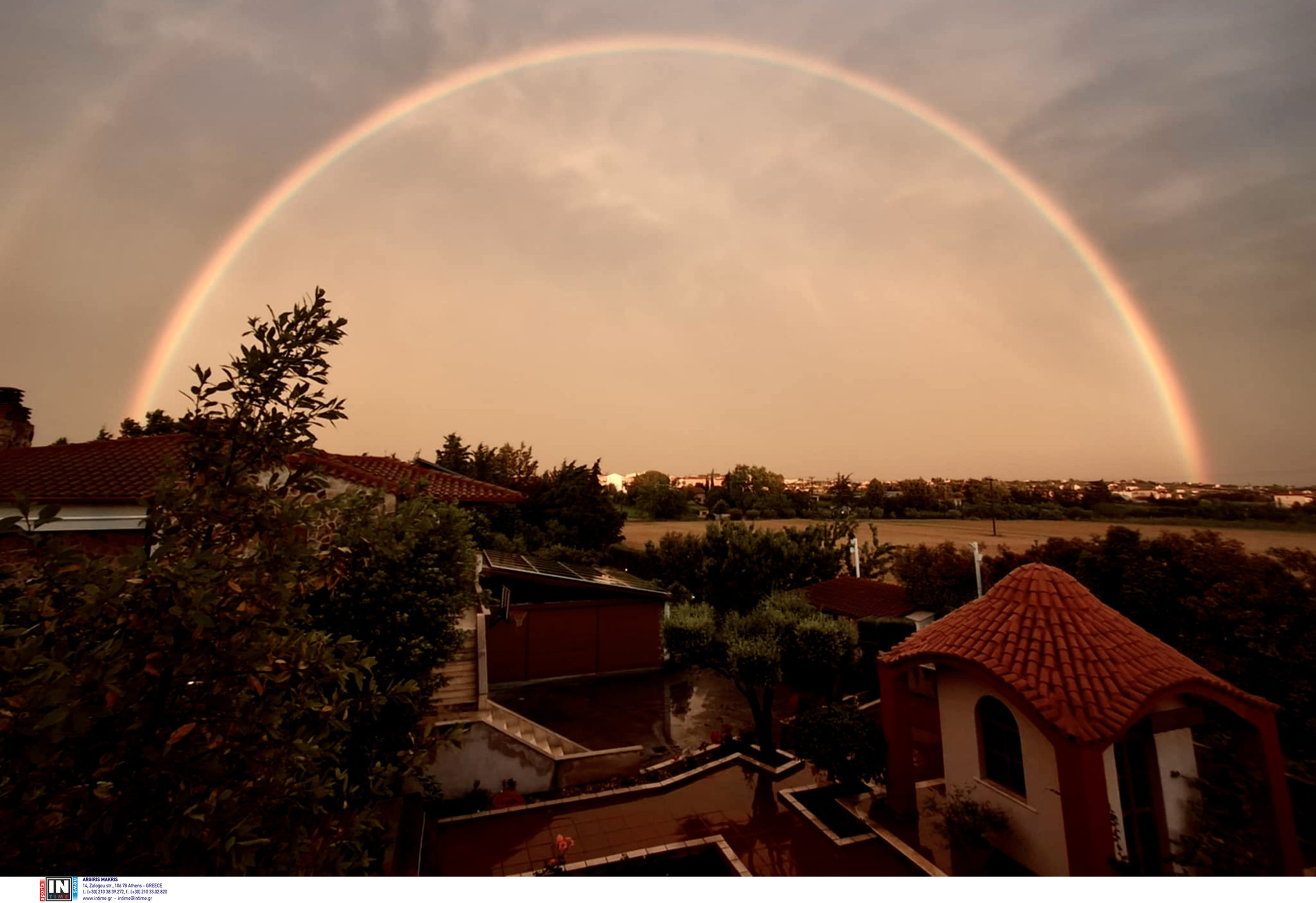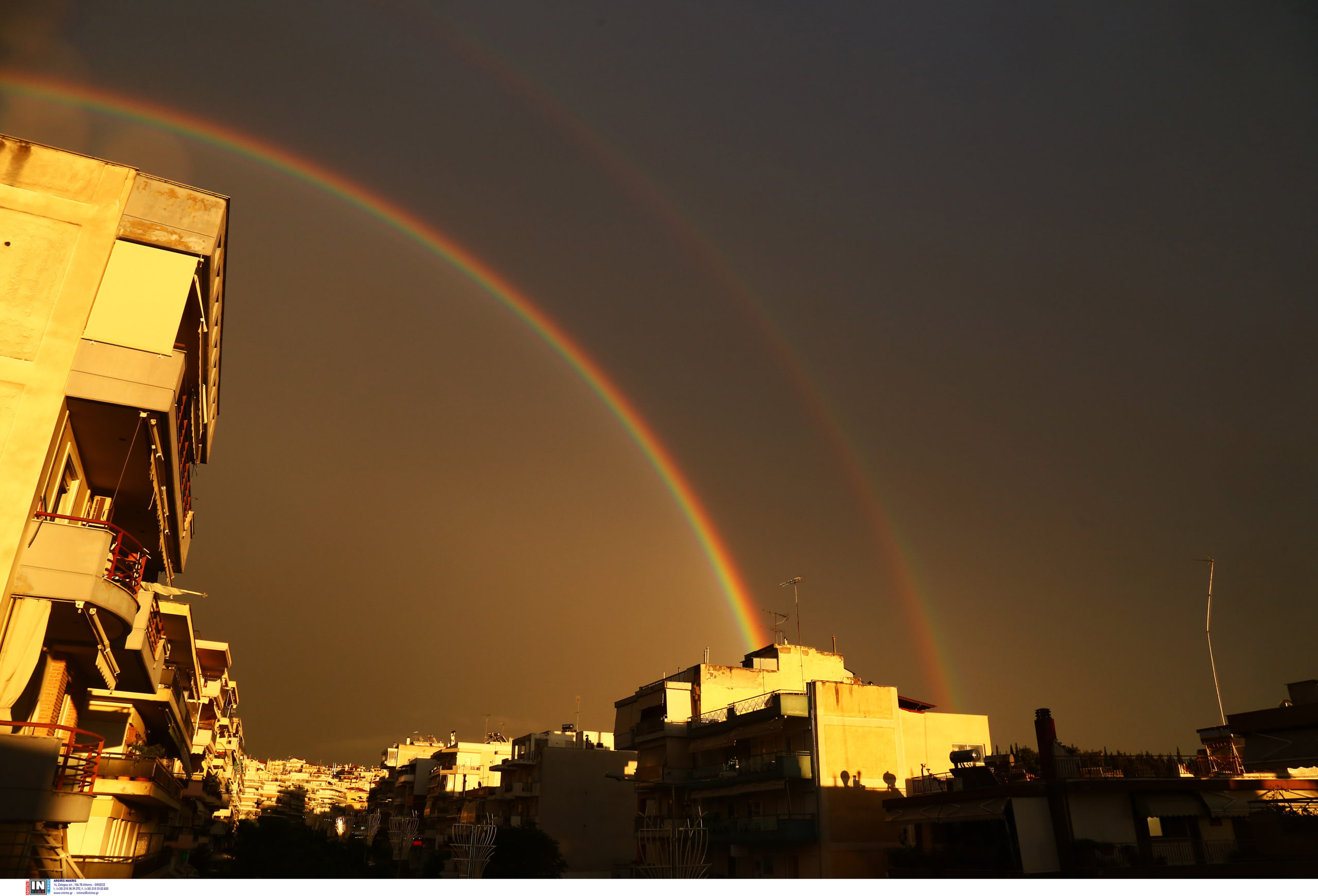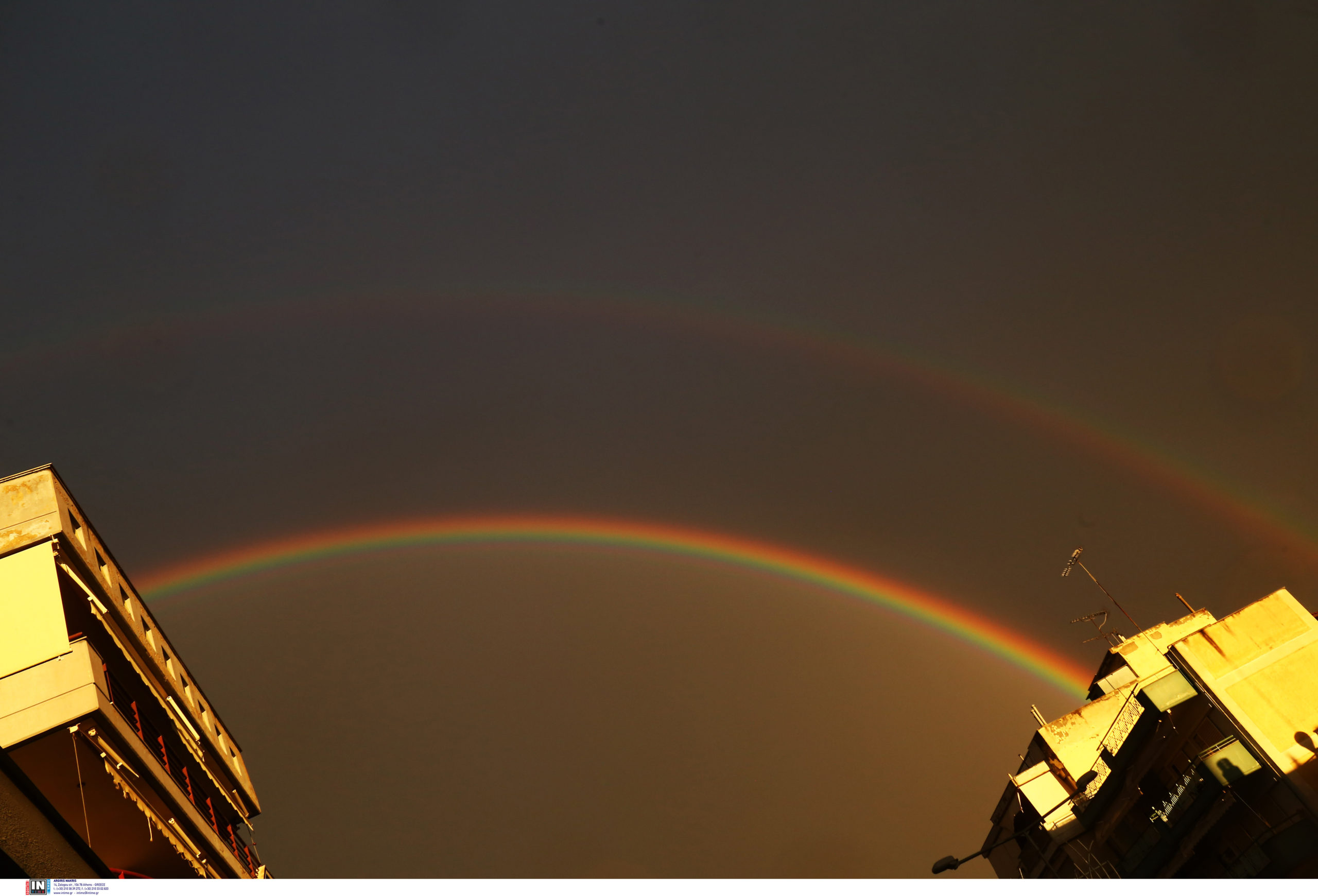 Το σπάνιο διπλό τόξο αποτέλεσε ίσως την πιο εντυπωσιακή εικόνα των τελευταίων μηνών στον ουρανό της πόλης.