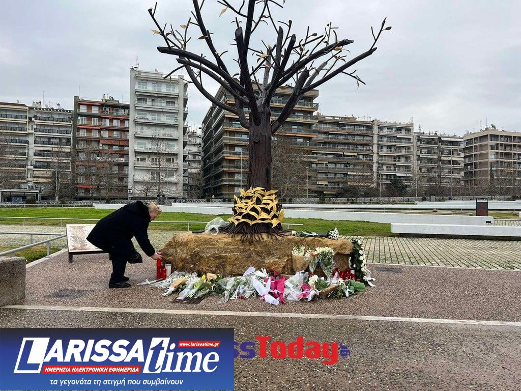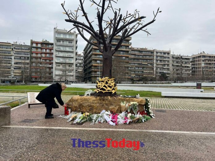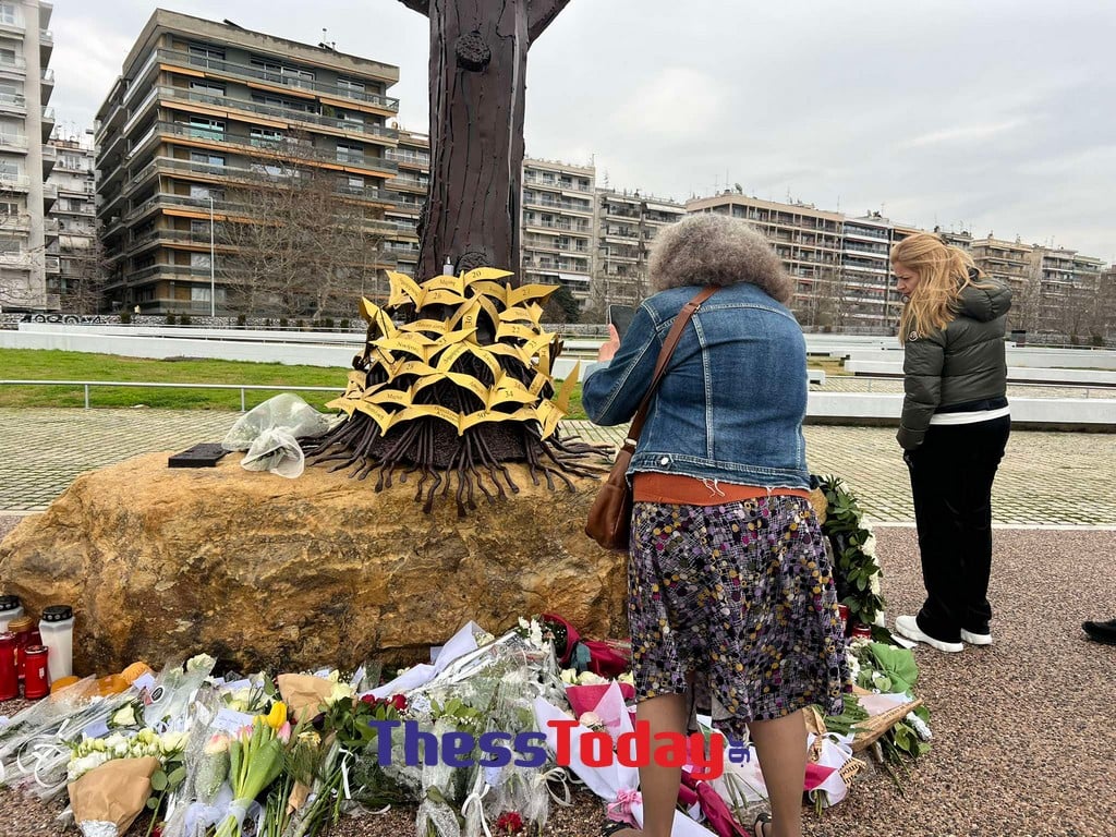 Βαθιά συγκίνηση και σιωπηλός πόνος κυριαρχούν στο «Δέντρο της Μνήμης», το μνημείο που δεσπόζει στον Κήπο του Απογευματινού Ηλίου, στην Θεσσαλονίκη, που είναι αφιερωμένο στα θύματα της τραγωδίας στα Τέμπη.