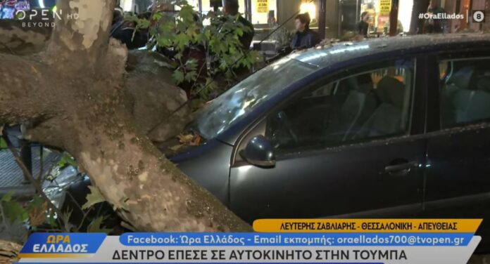Θεσσαλονίκη: Δέντρο έπεσε σε αυτοκίνητο στην Τούμπα