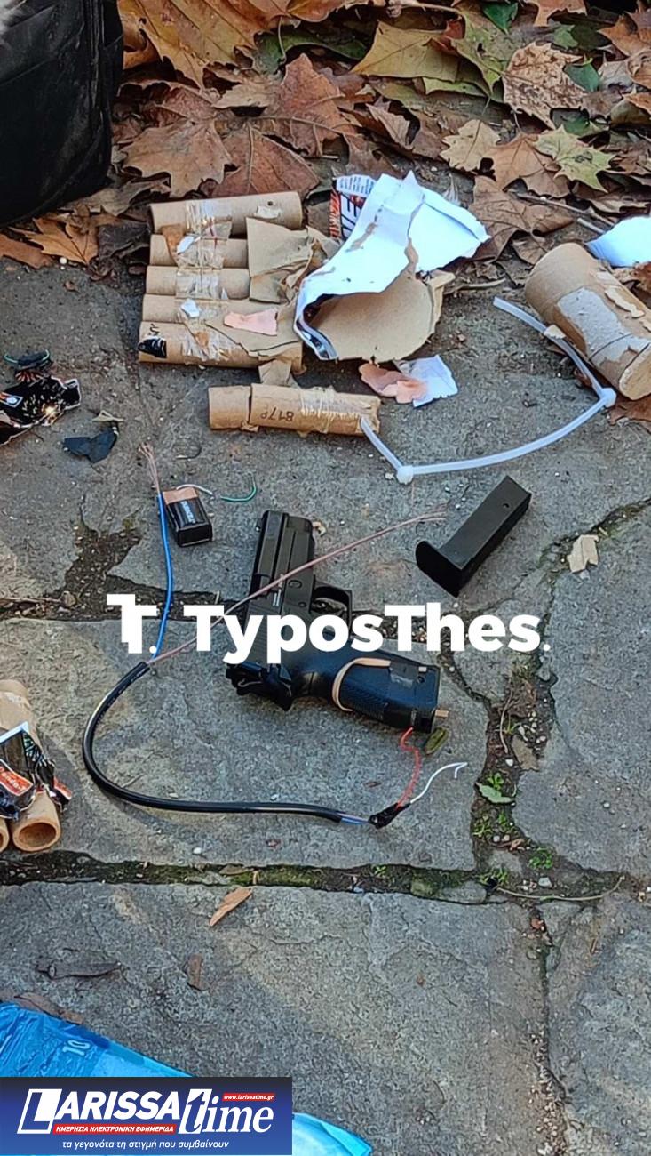 Σύμφωνα με πληροφορίες του TyposThes, ο εκρηκτικός μηχανισμός που είχε στην κατοχή του ο άνδρας, είχε πυροτεχνική σύνδεση 10 κροτίδων με καλώδια και μπαταρίες.