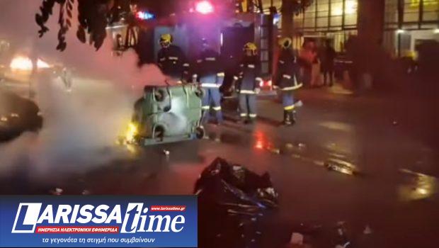 Κλήθηκε η Πυροσβεστική Υπηρεσία και κινήθηκε προς το σημείο με τη συνοδεία δυνάμεων των ΜΑΤ. Τα άτομα που έβαλαν φωτιά στους κάδους είχαν αποχωρήσει.