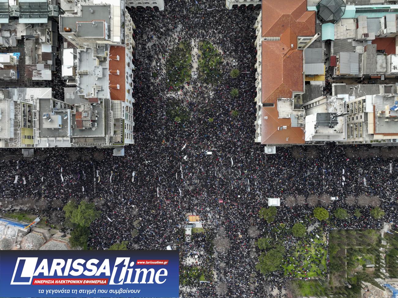 Στιγμιότυπο από τη συγκέντρωση για τα Τέμπη στη Θεσσαλονίκη