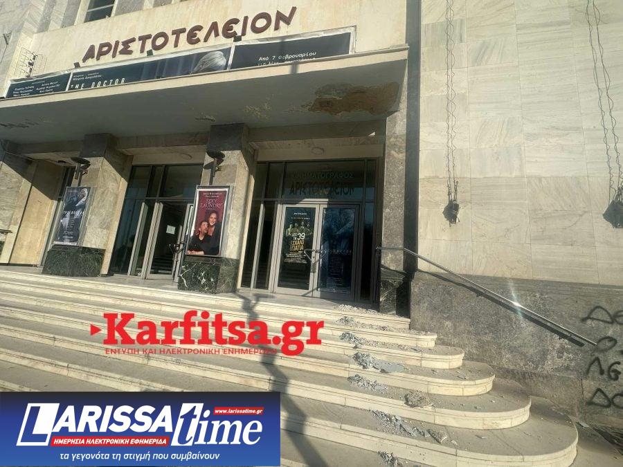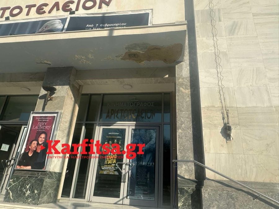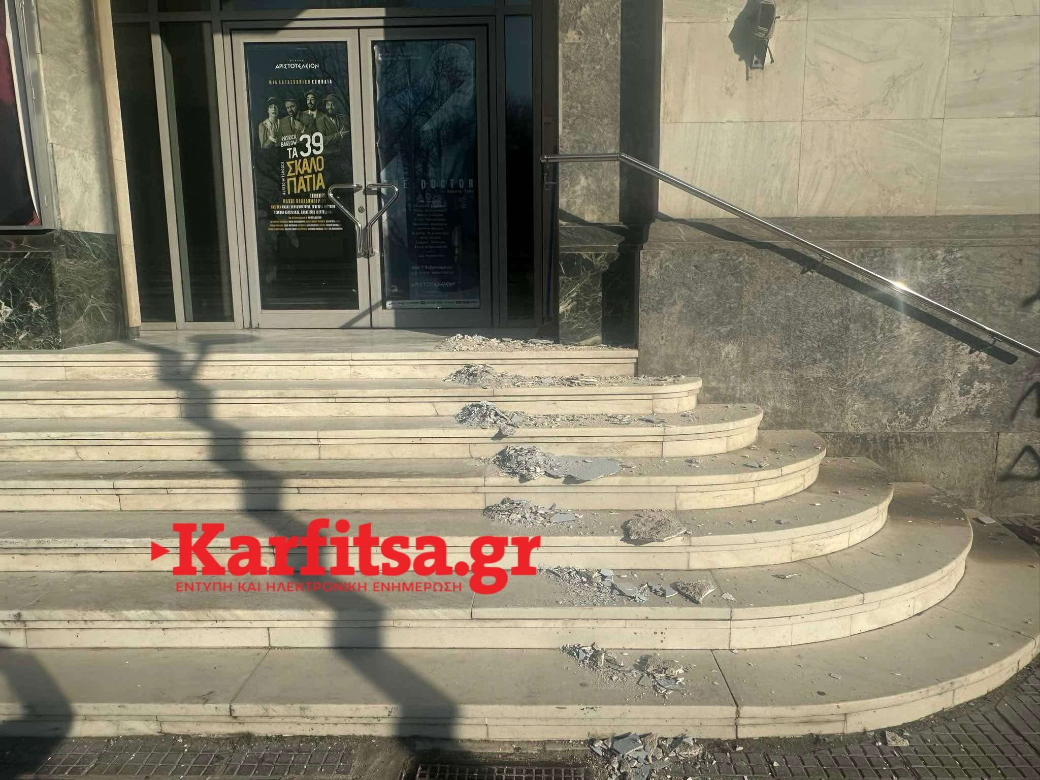Σοβάδες έπεσαν στην είσοδο του θεάτρου Αριστοτέλειον στο κέντρο της Θεσσαλονίκης.