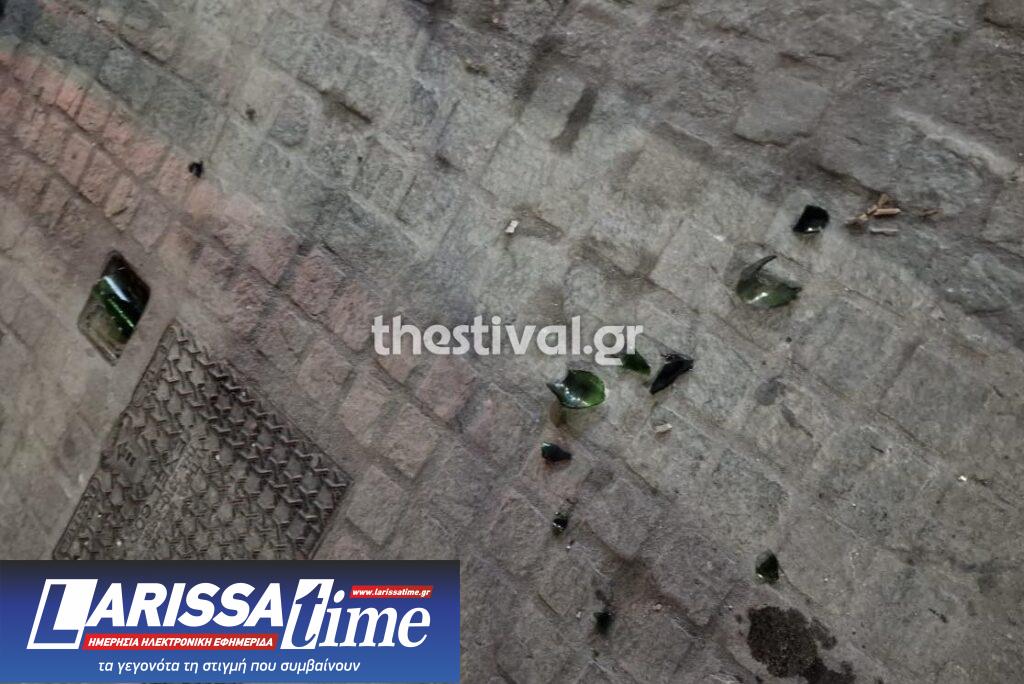 Τα θραύσματα από τα μπουκάλια των μολότοφ υπάρχουν παντού διάσπαρτα στο οδόστρωμα μπροστά από το κτίριο του προξενείου.