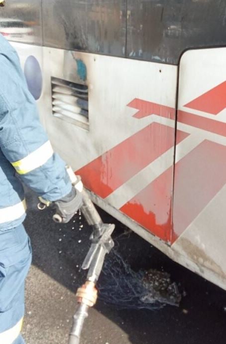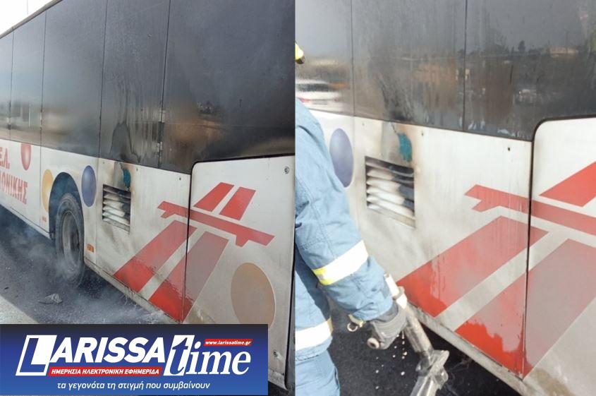 Η φωτιά ξέσπασε σε ελαστικό του λεωφορείου, ενώ αυτό ήταν εν κινήσει, έπειτα από φρενάρισμα.
