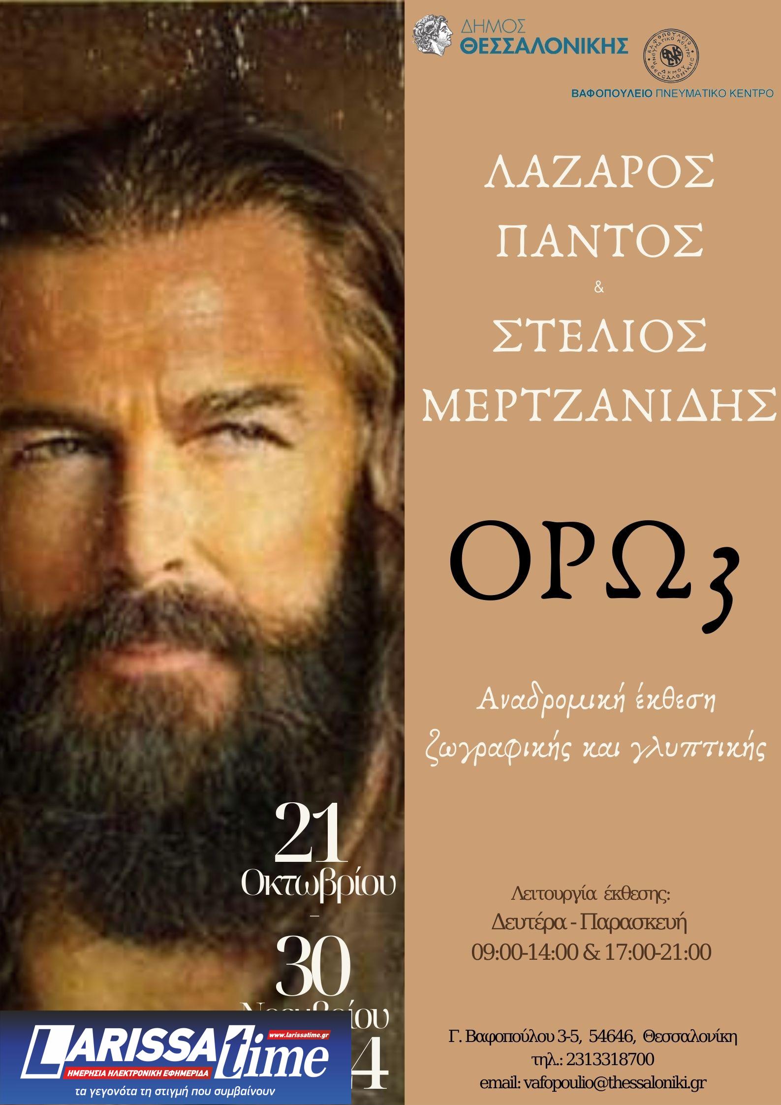 Το Βαφοπούλειο Πνευματικό Κέντρο διοργανώνει από τις 21 Οκτωβρίου έως τις 30 Νοεμβρίου 2024 κοινή αναδρομική έκθεση έργων του ζωγράφου Λάζαρου Πάντου και του γλύπτη Στέλιου Μερτζανίδη με τίτλο «ΟΡΩ 3».