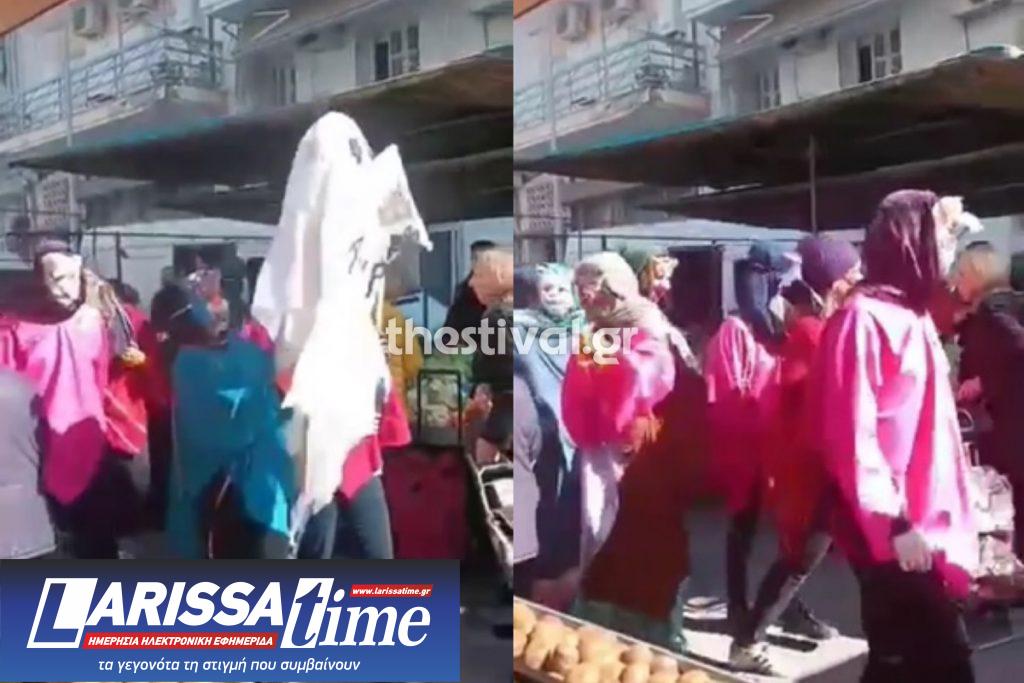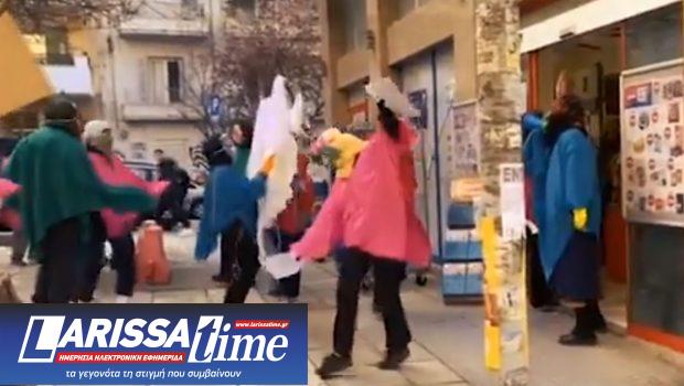 Οι… «καρναβαλιστές», σύμφωνα με τα τοπικά μέσα ενημέρωσης, διέσχισαν αρχικά τη λαϊκή αγορά επί της οδού Γκράτσιου, στην Άνω Πόλη, παίζοντας μουσική και μοιράζοντας φυλλάδια διαμαρτυρόμενοι για την ακρίβεια.