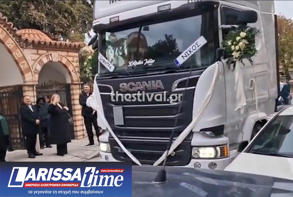 Συγκεκριμένα, όπως θα δείτε στο βίντεο του thestival.gr, η νύφη δεν έφτασε στην εκκλησία για να παντρευτεί τον εκλεκτό της καρδιάς της με ένα απλό αυτοκίνητο, αλλά με έναν… τράκτορα νταλίκας.