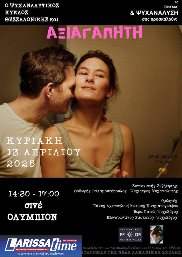 Ο Ψυχαναλυτικός Κύκλος Θεσσαλονίκης και η Ελληνική Εταιρεία της Νέας Λακανικής Σχολής (ΕΕ-ΝΛΣ), με την υποστήριξη της Ακαδημίας Κλινικών Σπουδών της Αθήνας (ΑΚΣΠΑ) και του Φεστιβάλ Κινηματογράφου Θεσσαλονίκης, διοργανώνουν στο πλαίσιο της ενότητας Σινεμά και Ψυχανάλυση και του ετήσιου συνεδρίου της Νέας Λακανικής Σχολής με θέμα «Οδυνηροί Έρωτες» (Μάιος 2025), την προβολή της ταινίας Αξιαγάπητη (2024) της Λίλια Iνγκολφσντότιρ.