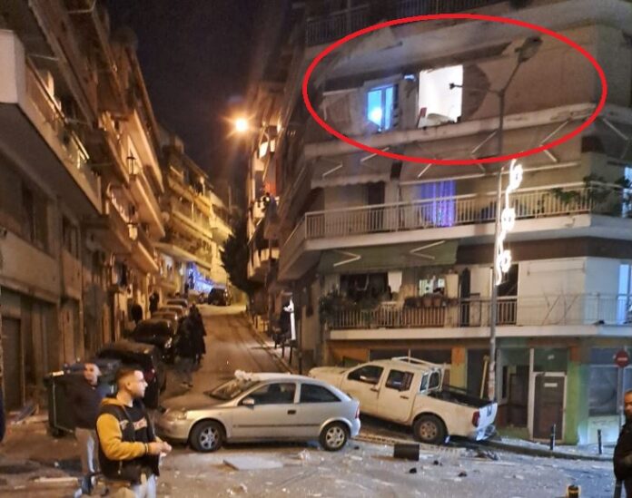 Η έκρηξη ήταν τόσο ισχυρή που διέλυσε την μπαλκονόπορτα του διαμερίσματα, γκρέμισε μέρος του τοίχου και εκσφενδόνισε τα κάγκελα του μπαλκονιού σε μεγάλη απόσταση.