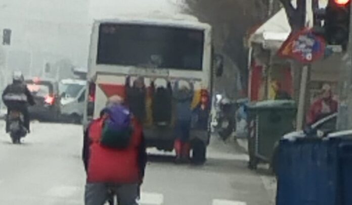 Ένα άκρως επικίνδυνο περιστατικό καταγράφηκε στη Θεσσαλονίκη, όπου τρία άτομα «κρεμάστηκαν» στο πίσω μέρος ενός λεωφορείου, ρισκάροντας την ίδια τους τη ζωή.