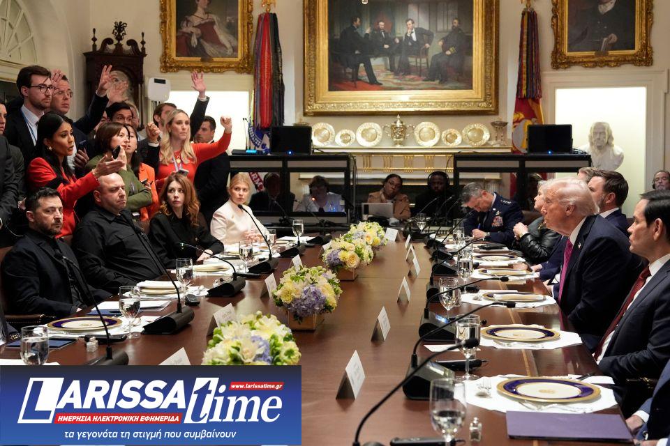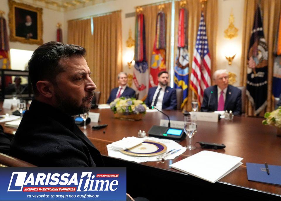 Ο Πρόεδρος της Ουκρανίας Βολοντίμιρ Ζελένσκι, ακούει τον Πρόεδρο Ντόναλντ Τραμπ, στην Αίθουσα του Υπουργικού Συμβουλίου του Λευκού Οίκου, την Παρασκευή 17 Οκτωβρίου 2025, στην Ουάσινγκτον.
