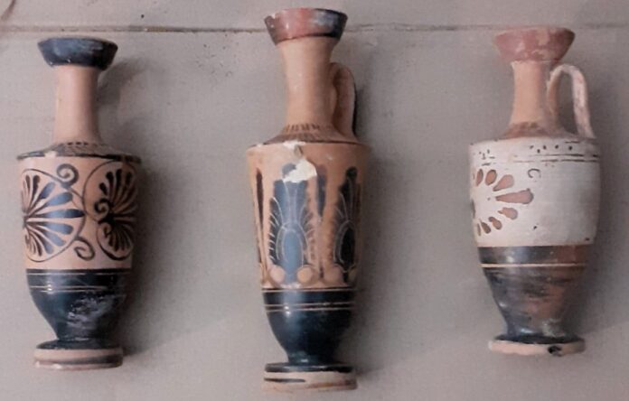 Αρχαία αντικείμενα που χρονολογούνται από τους γεωμετρικούς (1100-750 π.Χ.) έως τους ελληνιστικούς χρόνους (μέχρι 31 π.Χ.) εντοπίστηκαν σε κατάστημα που διαχειρίζεται η Εθνική Πινακοθήκη, στο Μέγαρο του Κληροδοτήματος Αλεξάνδρου Σούτσου, επί της οδού Σταδίου 33 και Πεσμαζόγλου 3, στην Αθήνα.