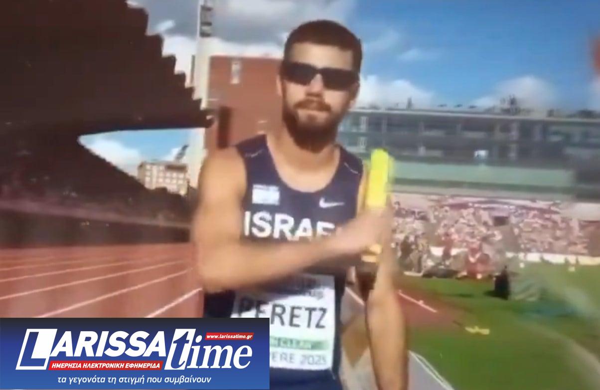Έντονες αντιδράσεις έχει προκαλέσει ο Ισραηλινός αθλητής, ο οποίος λίγο πριν ξεκινήσει η κούρσα του στο Ευρωπαϊκό Πρωτάθλημα Στίβου Κ20 έκανε μία χειρονομία αποκεφαλισμού.