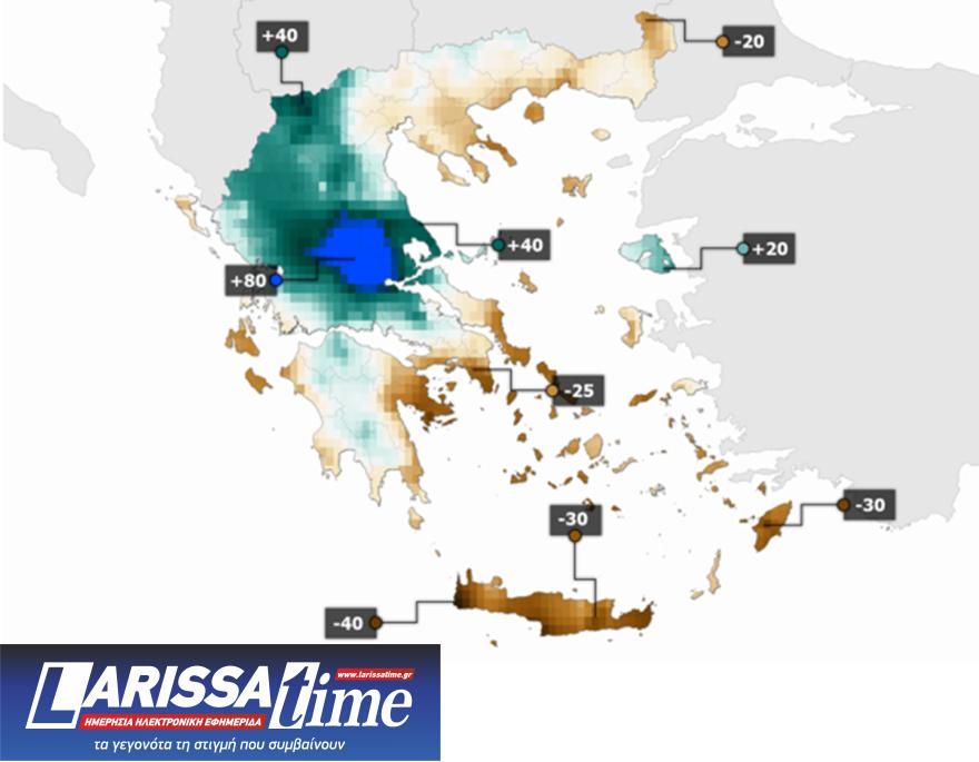 Οι περιοχές όπου σημειώθηκαν περισσότερες βροχές σχετικά με την κλιματική τιμή ήταν κυρίως η Θεσσαλία (με πολύ μεγάλη απόκλιση από τις κλιματικές τιμές λόγω των ακραίων βροχοπτώσεων του Σεπτεμβρίου), και μεγάλα τμήματα της Ηπείρου και της Δυτικής Μακεδονίας.