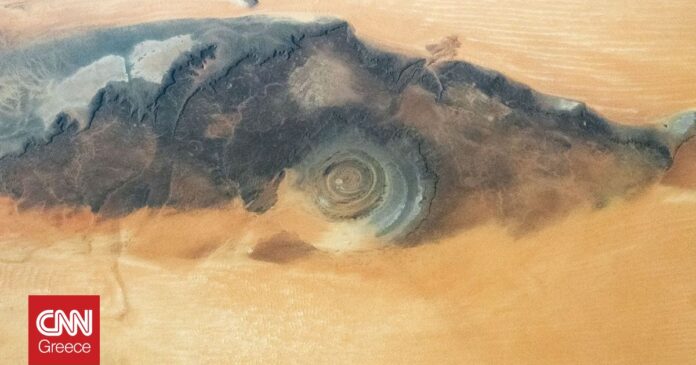 Από τον Διεθνή Διαστημικό Σταθμό μοιάζει με τεράστια κόρη ματιού χαραγμένη στην άμμο, με ομόκεντρους δακτυλίους που φαίνονται σχεδόν υπερβολικά τέλειοι για να είναι φυσικοί.