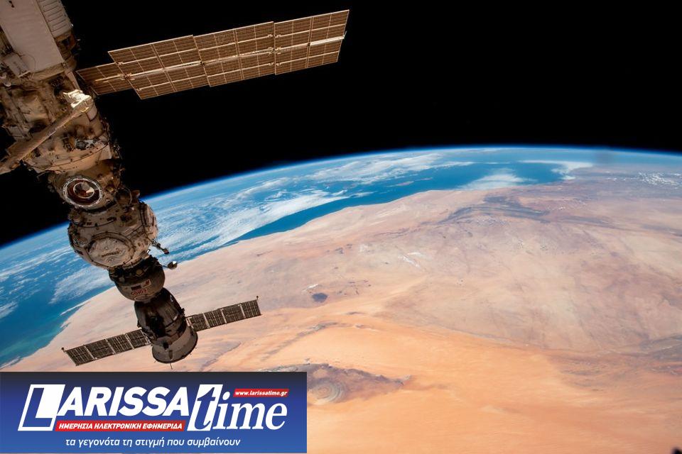Το «Μάτι της Σαχάρα» διακρίνεται στο κάτω μέρος αυτής της φωτογραφίας από τον Διεθνή Διαστημικό Σταθμό