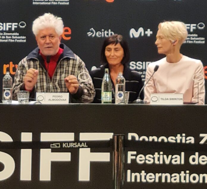 Αν και είχε δύο ταινίες στο Φεστιβάλ του Σαν Σεμπαστιάν, η Τίλντα Σουίντον έδωσε το παρών μόνο στη μία, αυτή του Πέδρο Αλμοδόβαρ. Μίλησε ελάχιστα στη συνέντευξη τύπου αλλά υπογράμμισε αυτό που όλοι υποψιαζόμαστε: όταν δύο εραστές της τέχνης συναντιούνται, η φλόγα δεν μπορεί να μείνει κρυφή.