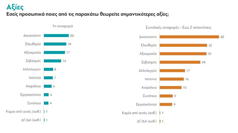 Στο ερώτημα «Ποιες αξίες θεωρούμε σημαντικότερες;» οι Έλληνες απαντούν: