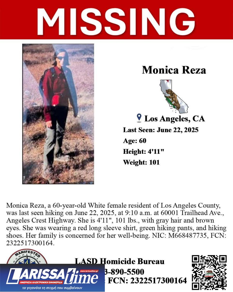 Οι Αρχές αναζητούν τα ίχνη της Μόνικα Ρέζα