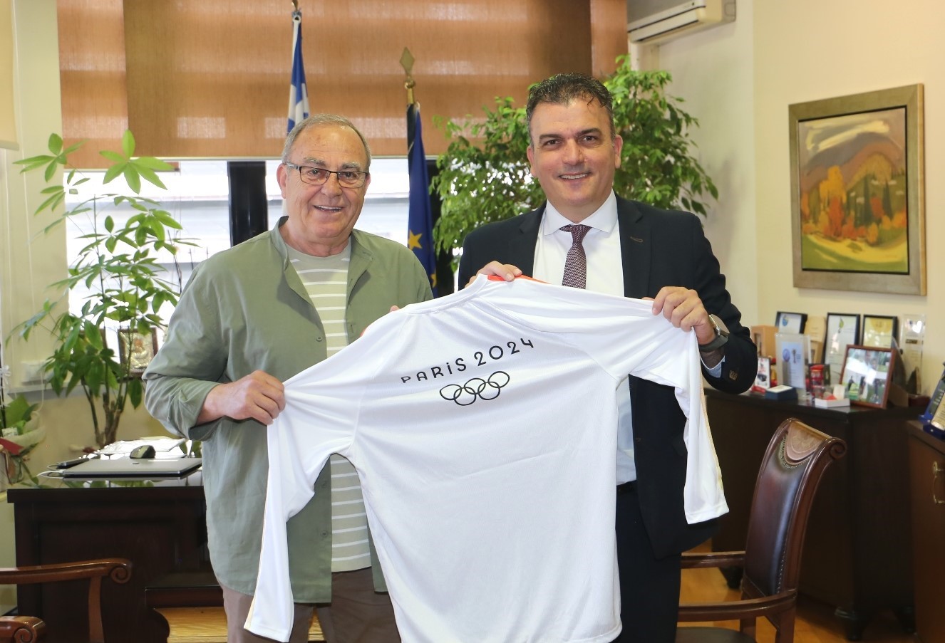 Ο κ. Βαλαώρας, ο ποδοσφαιρικός θρύλος της Λάρισας, παρέλαβε την στολή του λαμπαδηδρόμου στη συνάντηση που είχε με τον Δήμαρχο Λαρισαίων, κ. Θανάση Μαμάκο, στο Δημαρχείο της Λάρισας.