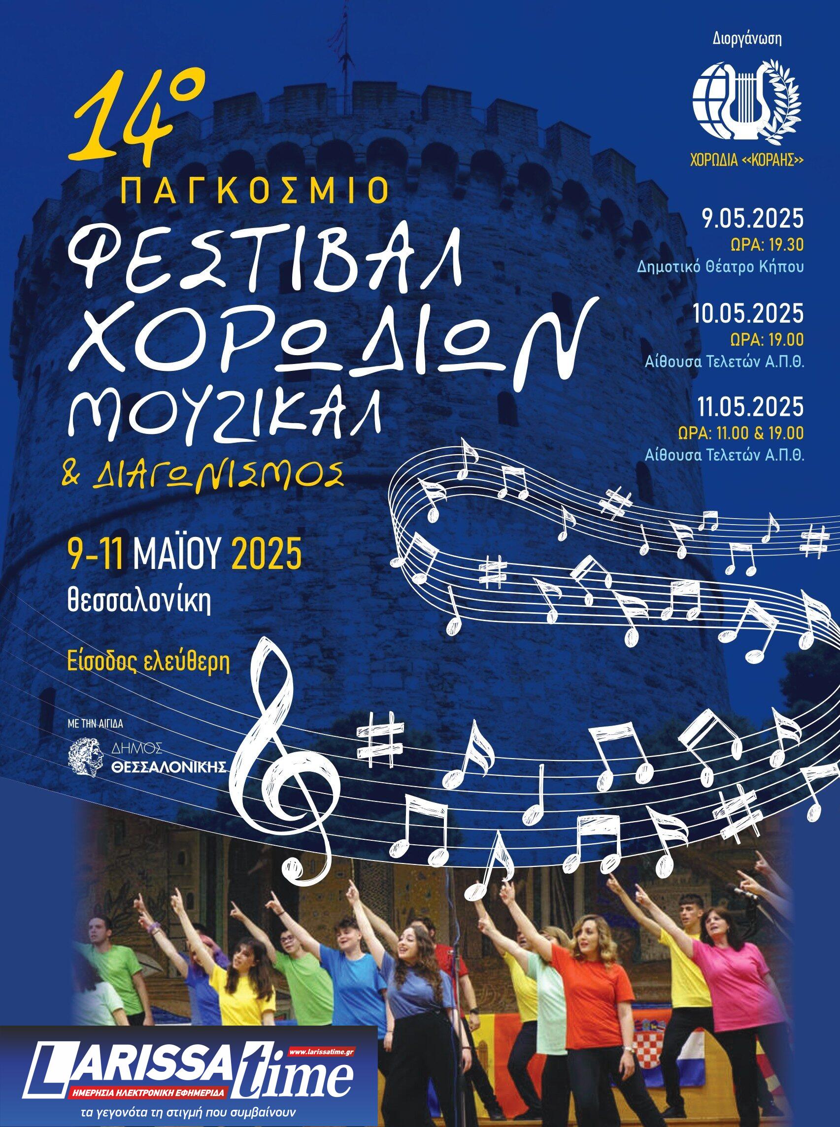 Το 14ο Παγκόσμιο Φεστιβάλ Χορωδιών Μιούζικαλ συνδιοργανώνουν ο Σύλλογος και η χορωδία «ΚΟΡΑΗΣ» στη Θεσσαλονίκη στις 9, 10 & 11 Μαΐου 2025.