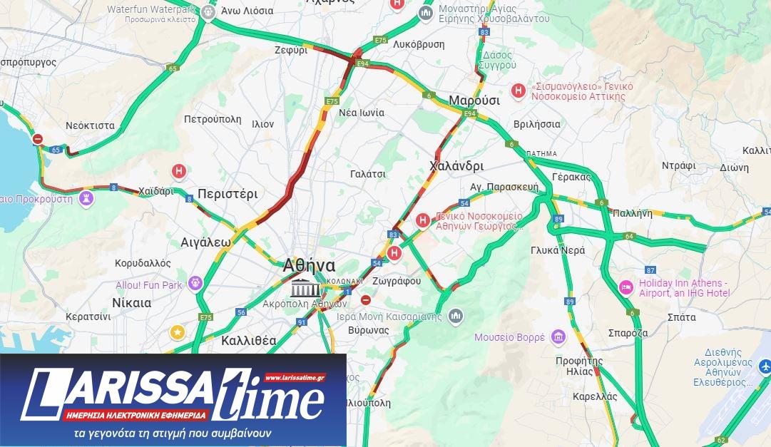 Χαμηλές ταχύτητες καταγράφονται στην Κατεχάκη στο ρεύμα από Ηλιούπολη και τμηματικά στα δύο ρεύματα της Λεωφόρου Κηφισίας.