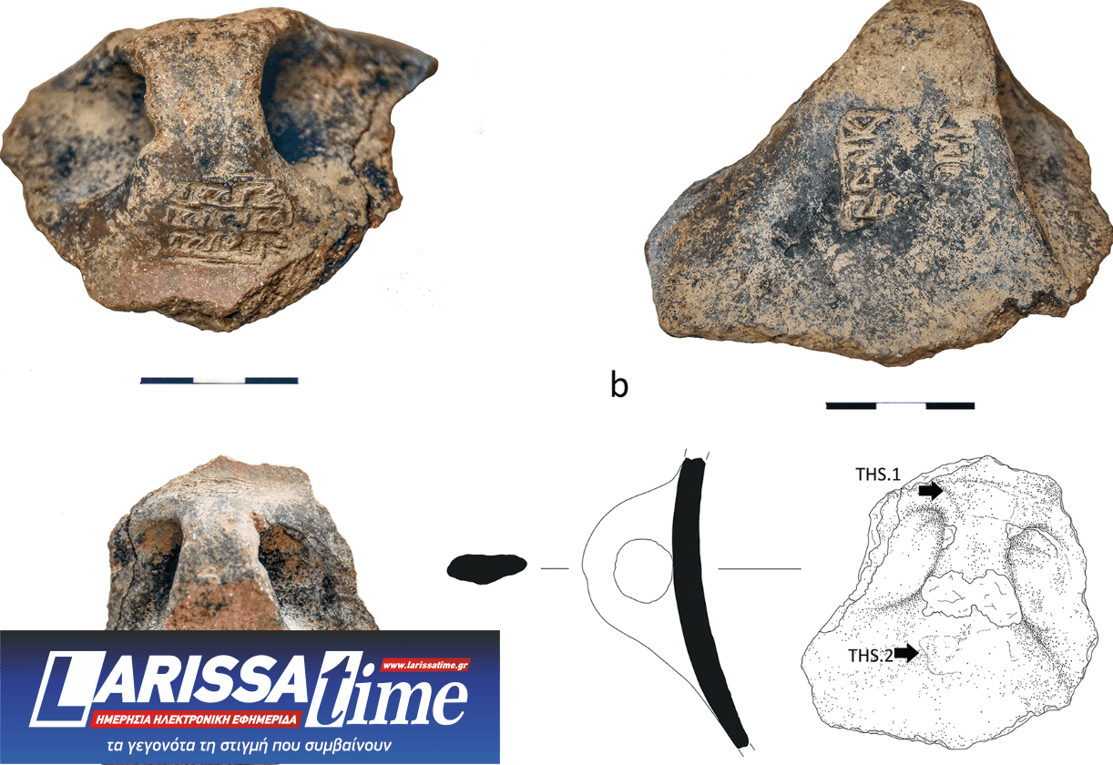 Όπως αναφέρεται σε δημοσίευμα που φιλοξενείται στον ιστότοπο του Ιονίου Πανεπιστημίου, που συνοψίζει τα αποτελέσματα της έρευνας των Κ. Σμπόνια, Ι. Τζαχίλη και Γ. Κορδατζάκη, και αναδημοσιεύει το ΑΠΕ-ΜΠΕ με τη σύμφωνη γνώμη του καθηγητή Κ. Σμπόνια, «πρόκειται για δύο αποτυπώματα σφραγίδων σε λαβή αγγείου, τα οποία προέρχονται από ένα δωμάτιο του οικισμού που χρονολογείται στα μέσα της 3ης χιλιετίας π.Χ. (Πρωτοκυκλαδική ΙΙ περίοδος). Το πρώτο σφράγισμα (THS.1), στο άνω τμήμα της λαβής, προέρχεται από μία τρίπλευρη σφραγίδα με επιμήκεις επιφάνειες, διακοσμημένες με σειρά αφηρημένων και σχηματικών συμβόλων σε παρατακτική διάταξη. Τα διαδοχικά αυτά σημεία, τοποθετημένα σε συνεκτική ακολουθία, συνιστούν την πρωιμότερη μαρτυρία για εξελίξεις που συνδέονται με την εμφάνιση της γραφής στον αιγαιακό χώρο. Το δεύτερο σφράγισμα (THS.2), με γραμμικά και μαιανδροειδή διακοσμητικά θέματα, εντάσσεται στη γενικότερη παράδοση της αιγαιακής σφραγιδογλυφίας».