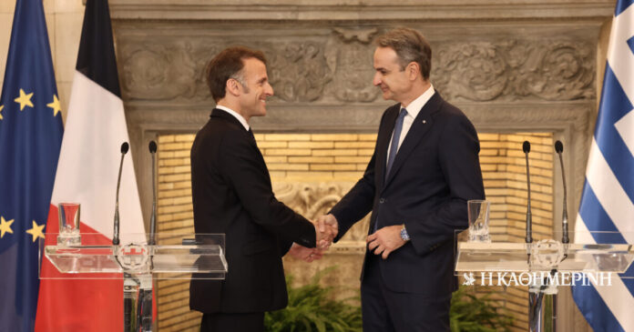 Χτες, κυβερνητικές πηγές ανέφεραν ότι η Ενισχυμένη Συνολική Στρατηγική Εταιρική Σχέση μεταξύ Γαλλίας και Ελλάδας σηματοδοτεί τη σύμπλευση και συνεργασία των δύο χωρών, όχι μόνο στην άμυνα, αλλά και στην οικονομία, την πολιτική προστασία, στο μεταναστευτικό, στην τεχνολογία, στο περιβάλλον, στην παιδεία και στον πολιτισμό, καθώς και τη συνεργασία στο πλαίσιο της ΕΕ και διεθνών οργανισμών.