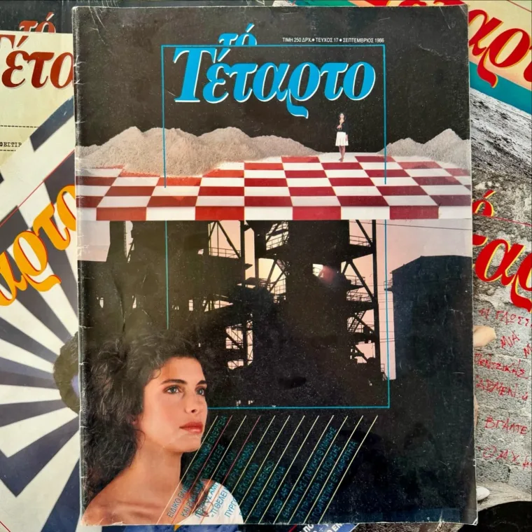 «Το πιο σπάνιο από τα δεκάδες εξώφυλλα της Ελένης. Το πρώτο της. Στο ιστορικό περιοδικό πολιτισμού, Τέχνης, κομψότητας και άποψης, «Το Τέταρτο» (ιδρυτής του, φυσικά, ο Μάνος Χατζιδάκις), που άλλαξε -μαζί με το ραδιοφωνικό Τρίτο Πρόγραμμα που προηγήθηκε- τον ρου μιας ολόκληρης εποχής και σκέψης. Τεύχος 17, Σεπτέμβριος 1986. Στα credits του εξωφύλλου με το πρόσωπο της Ελένης σ’ αυτό, αναγράφονται τα ονόματα των Κωστή Στήκα και Αχιλλέα Χαρίτου, στη φωτογράφιση και στο μακιγιάζ αντίστοιχα, ενώ την σύνθεση της εικόνας είχε κάνει ο Δημήτρης Καλοκύρης (Εκδόσεις «Γραμμή Α.Ε.»). Τυχαία ανακάλυψη από τους πάγκους του παλαιοβιβλιοπωλείου του Νάσου στην οδό Θησείου, στο Μοναστηράκι, πριν από κάποια χρόνια.