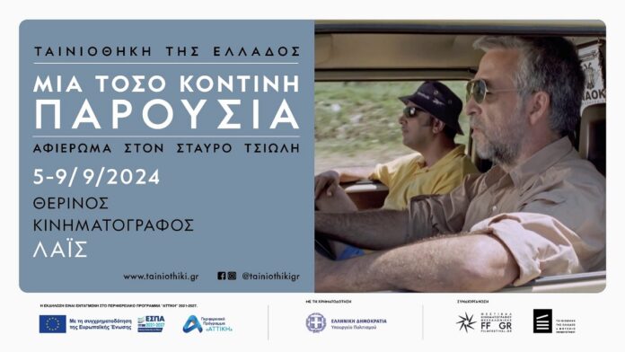 Η Ταινιοθήκη της Ελλάδος, η Ταινιοθήκη της Θεσσαλονίκης και το Φεστιβάλ Κινηματογράφου Θεσσαλονίκης, τιμούν το Σταύρο Τσιώλη με ένα αφιέρωμα στις ταινίες του, που θα πραγματοποιηθεί στις 5-9 Σεπτεμβρίου, στην ταράτσα του Θερινού Κινηματογράφου Λαΐς της Ταινιοθήκης της Ελλάδος.