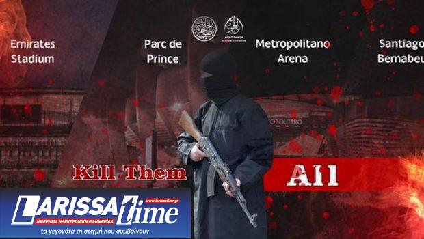 O τρόμος επιστρέφει! Το Al Azaim, ένα μέσο που είναι υπεύθυνο για τη διάδοση μηνυμάτων από το Ισλαμικό Κράτος (DAESH, ISIS), δημοσιοποίησε μια εικόνα στην οποία απειλούνται το Parc des Princes, το Bernabéu, το Metropolitano και το Emirates!