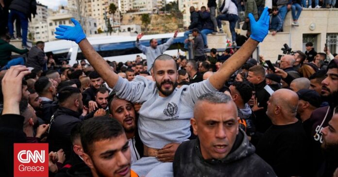 «Με την έγκριση των πολιτικών αρχών, όλοι οι τρομοκράτες απελευθερώθηκαν από τις φυλακές Οφερ (στην κατεχόμενη Δυτική Όχθη) και Κτζιότ» στο νότιο Ισραήλ, ανέφερε η υπηρεσία φυλακών σε ανακοίνωσή της, επιβεβαιώνοντας τον αριθμό των κρατουμένων που αφέθηκαν ελεύθεροι στην ανταλλαγή, ανακοίνωσαν νωρίτερα παλαιστινιακές πηγές.