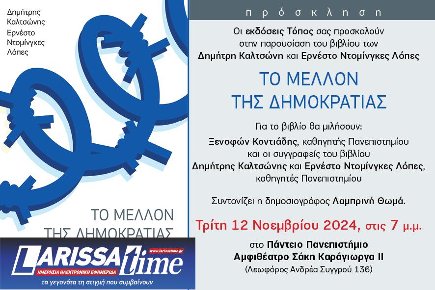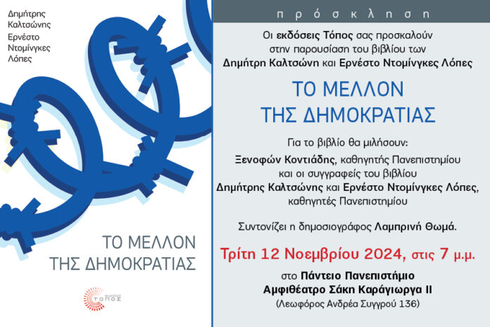Tην απάντηση σε μία σειρά ερωτημάτων πραγματεύεται το βιβλίο, «Το Μέλλον της Δημοκρατίας», του Δημήτρη Καλτσώνη και του Ερνέστο Ντοµίνγκες Λόπες, όπως «Πότε και σε ποιο βαθµό µπορούµε να λέµε ότι υπάρχει δηµοκρατία; Πώς διαγράφεται το µέλλον της; Η ακροδεξιά και ο φασισµός βρίσκονται πράγµατι ante portas»;