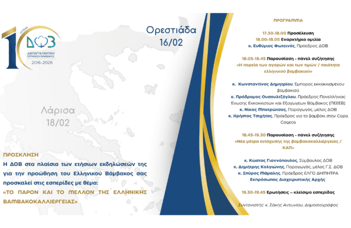 Η πρόσκληση και το πρόγραμμα της εσπερίδας είναι αναρτημένο στην ιστοσελίδα της Διεπαγγελματικής: https://hca.org.gr/orestiada-esperida-2026/