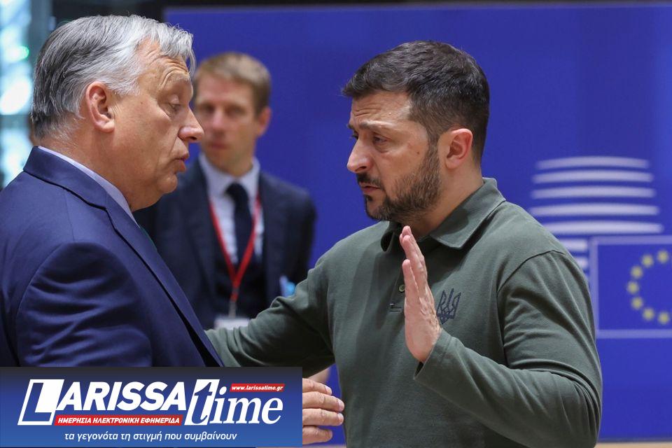 Ο πρόεδρος της Ουκρανίας Βολοντίμιρ Ζελένσκι μιλά με τον Ούγγρο ομόλογό του Βίκτορ Όρμπαν στις Βρυξέλλες στις 27 Ιουνίου, 2024