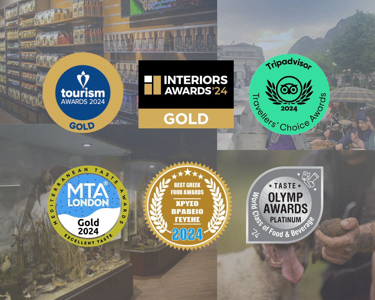 Τα βραβεία αυτά, έρχονται ως αποτέλεσμα της συμμετοχής του σε έξι διαφορετικές διαγωνιστικές διαδικασίες (Tourism Awards, Interiors Awards, Tripadvisor, Mediterranean Taste Awards London (MTA), Best Greek Food Awards, Olymp Awards) και αφορούν το ίδιο το μουσείο, τα προϊόντα μανιταριών που διαθέτει και τις δραστηριότητες του.