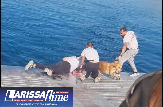 Έναν σκύλο που εντοπίστηκε στη μέση της θάλασσας κατάφεραν να διασώσουν τα μέλη του πληρώματος στο φέρι μποτ  «Ιωάννης Θηρεσία» που κάνει το δρομολόγιο Σαλαμίνα – Πέραμα.