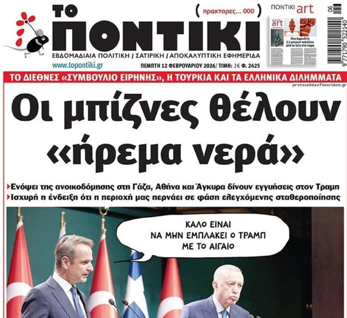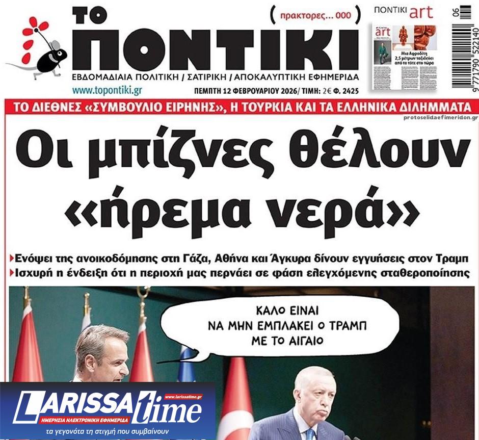 Διαβάστε το πρωτοσέλιδο της εφημερίδας «Το Ποντίκι» σήμερα 12/2/2026.
