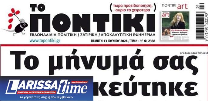 Διαβάστε το πρωτοσέλιδο της εφημερίδας «Το Ποντίκι» σήμερα 13/6/2024.