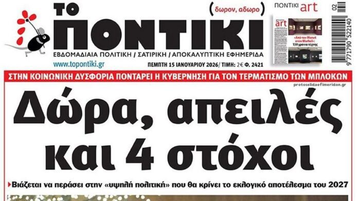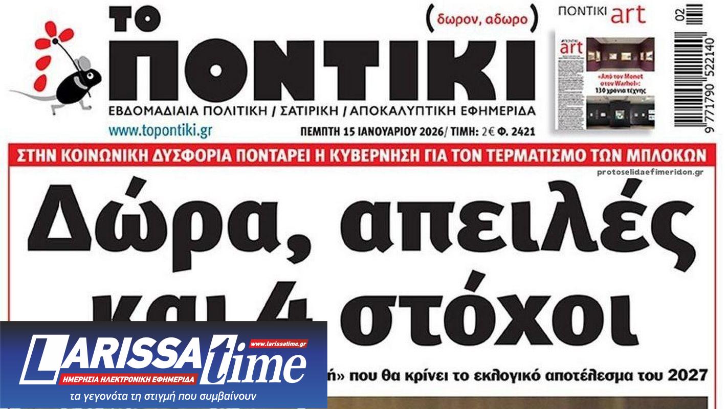 Διαβάστε το πρωτοσέλιδο της εφημερίδας «Το Ποντίκι» σήμερα 15/01/2026.