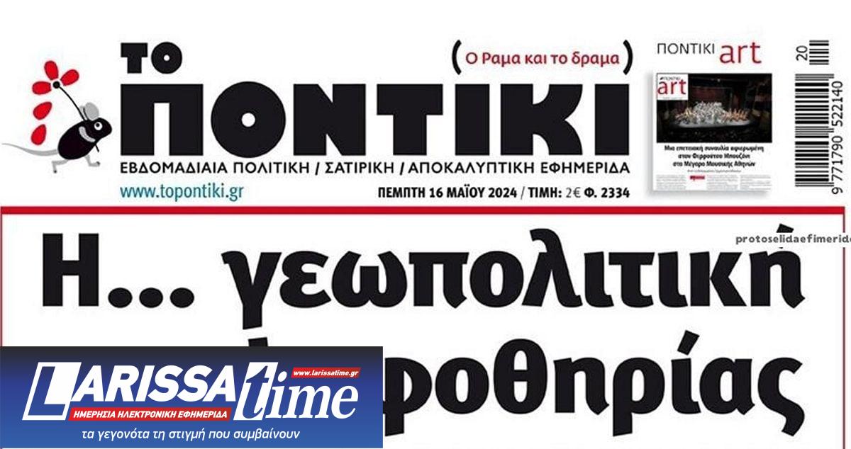Διαβάστε το πρωτοσέλιδο της εφημερίδας «Το Ποντίκι» σήμερα 16/5/2024.