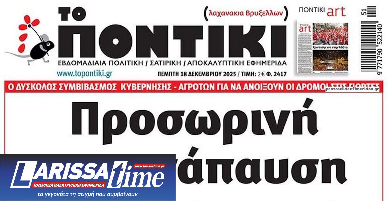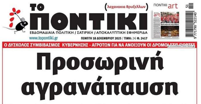 Διαβάστε το πρωτοσέλιδο της εφημερίδας «Το Ποντίκι» σήμερα 18/12/2025.