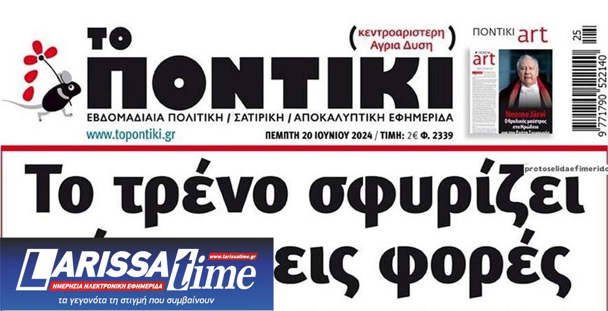 Διαβάστε το πρωτοσέλιδο της εφημερίδας «Το Ποντίκι» σήμερα 20/6/2024.