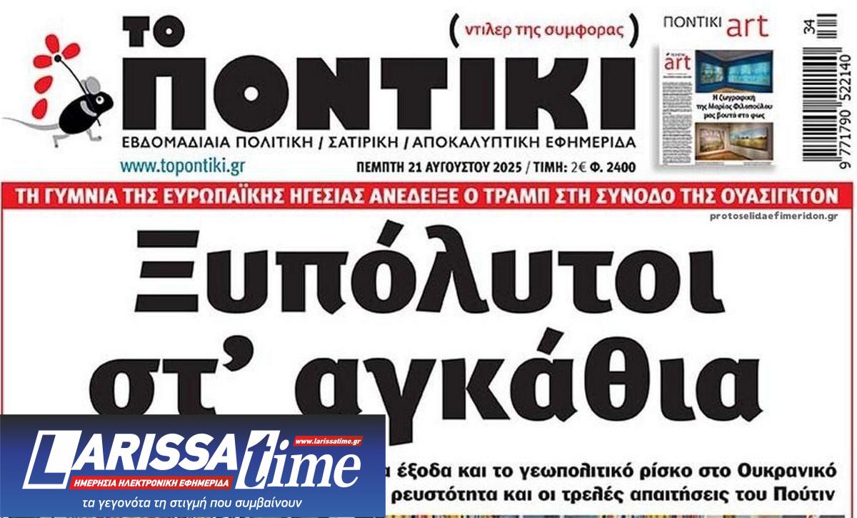 Διαβάστε το πρωτοσέλιδο της εφημερίδας «Το Ποντίκι» σήμερα 21/8/2025.