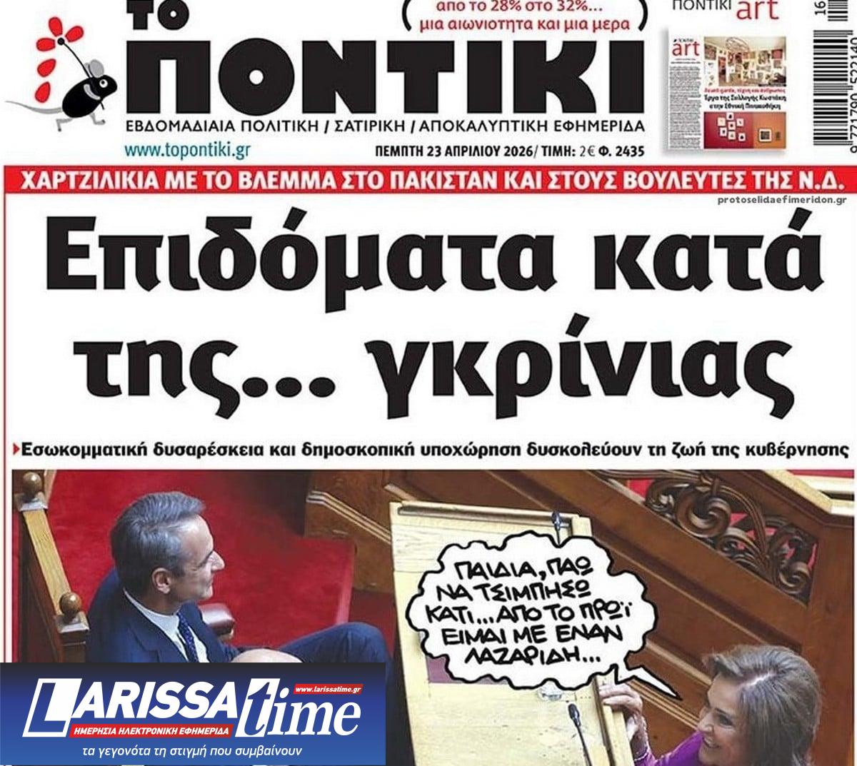 Διαβάστε το πρωτοσέλιδο της εφημερίδας «Το Ποντίκι» σήμερα 23/4/2026.