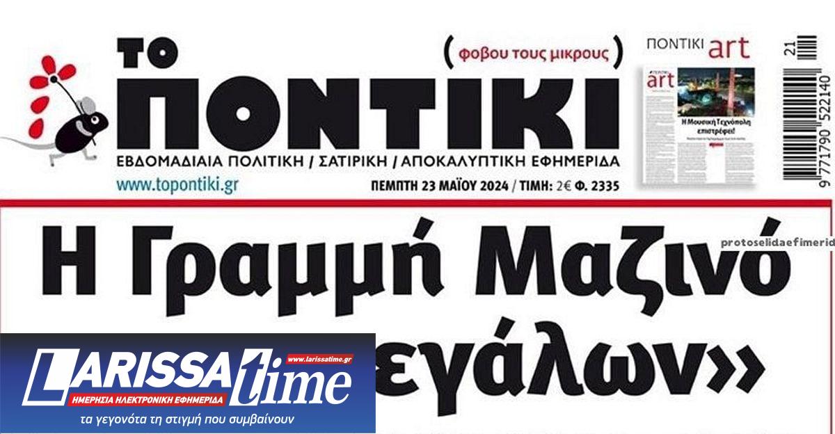 Διαβάστε το πρωτοσέλιδο της εφημερίδας «Το Ποντίκι» σήμερα 23/5/2024.