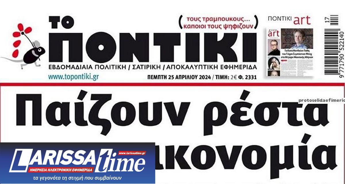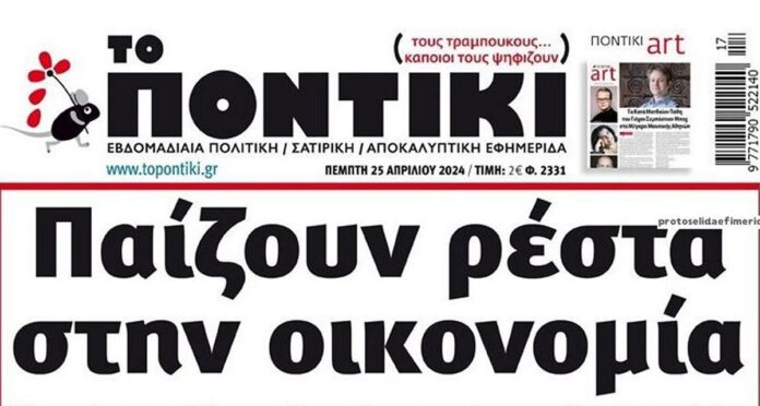Διαβάστε το πρωτοσέλιδο της εφημερίδας «Το Ποντίκι» σήμερα 25/4/2024.
