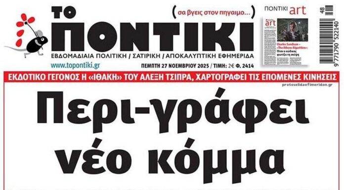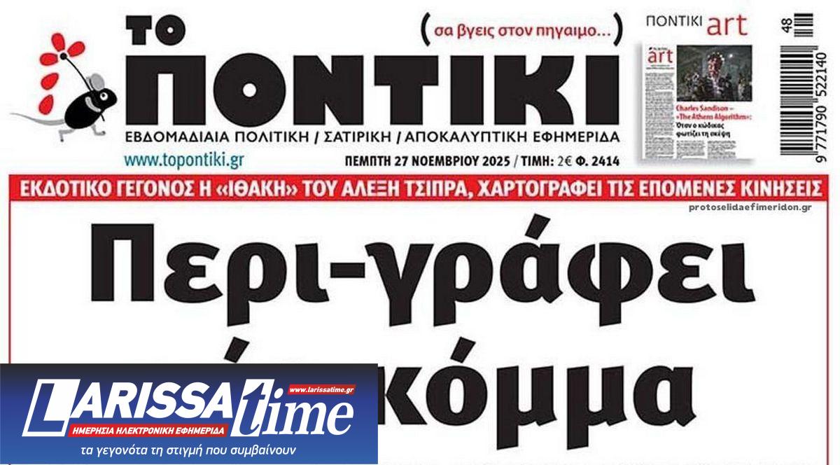 Διαβάστε το πρωτοσέλιδο της εφημερίδας «Το Ποντίκι» σήμερα 27/11/2025.