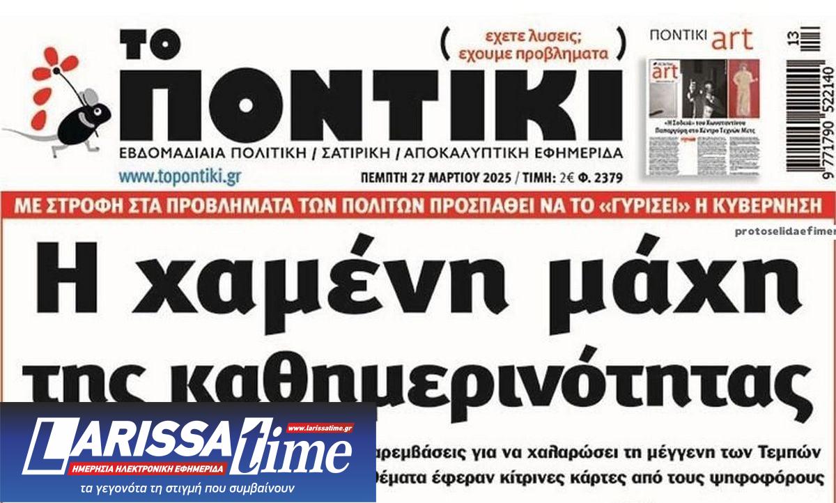 Διαβάστε το πρωτοσέλιδο της εφημερίδας «Το Ποντίκι» σήμερα 27/3/2025.